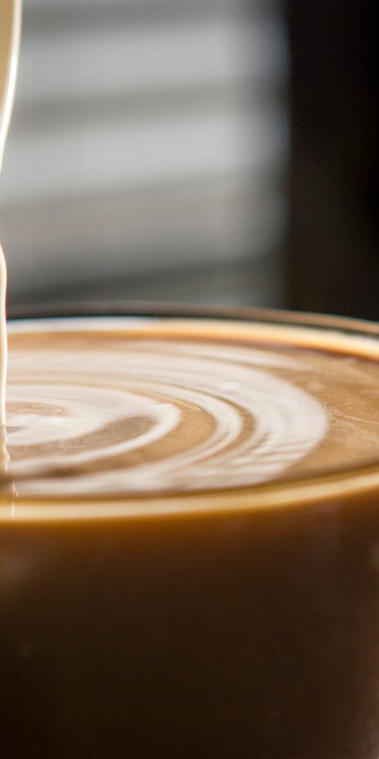 - Pour in steamed milk.